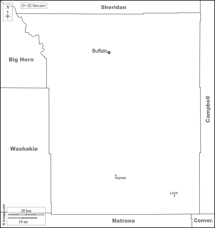 d-maps > संयुक्त राज्य > वायोमिंग > जॉन्सन काउंटी > सीमाओं, मुख्य शहरों, नाम, सफेद