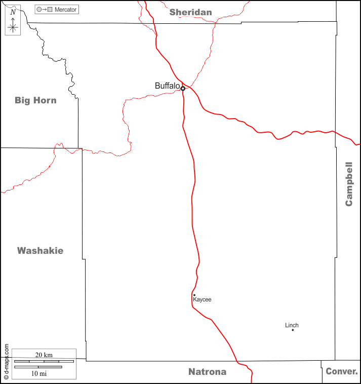 d-maps > संयुक्त राज्य > वायोमिंग > जॉन्सन काउंटी > सीमाओं, मुख्य शहरों, सड़कों, नाम, सफेद