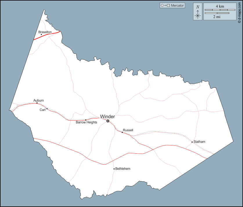 d-maps > संयुक्त राज्य > जॉर्जिया > बैरो काउंटी > बाह्यरेखा, मुख्य शहरों, सड़कों, नाम