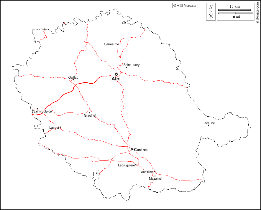 d-maps > यूरोप > फ़्रान्स > टार्न > बाह्यरेखा, मुख्य शहरों, सड़कों, नाम, सफेद