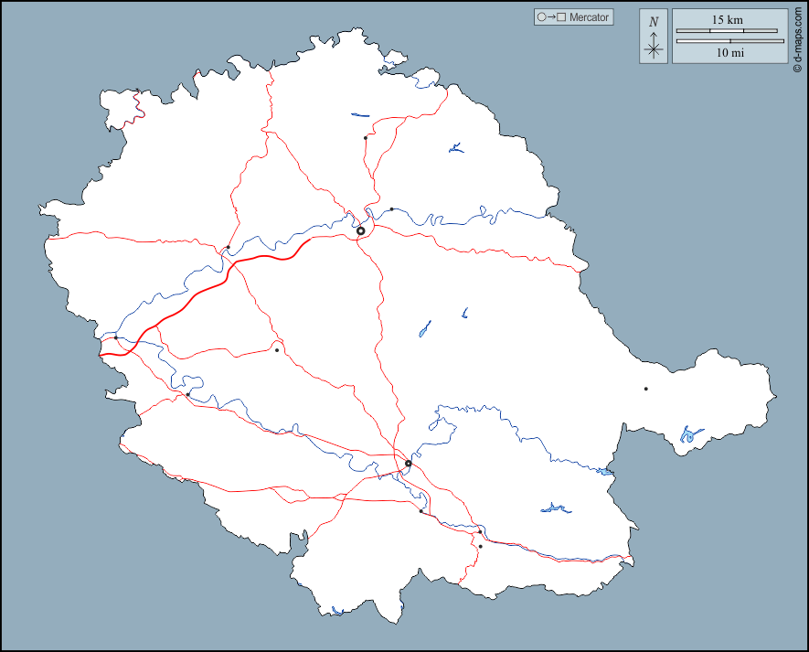 d-maps > यूरोप > फ़्रान्स > टार्न > बाह्यरेखा, जल-सर्वेक्षण, मुख्य शहरों, सड़कों