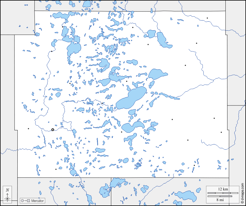 d-maps > संयुक्त राज्य > मिनेसोटा > ओटर टेल काउंटी > सीमाओं, जल-सर्वेक्षण, मुख्य शहरों
