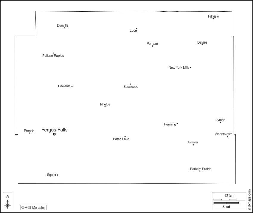 d-maps > संयुक्त राज्य > मिनेसोटा > ओटर टेल काउंटी > बाह्यरेखा, मुख्य शहरों, नाम, सफेद