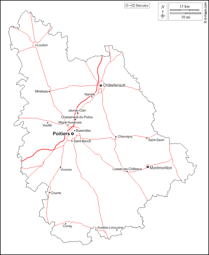 d-maps > यूरोप > फ़्रान्स > वियने > बाह्यरेखा, मुख्य शहरों, सड़कों, नाम, सफेद