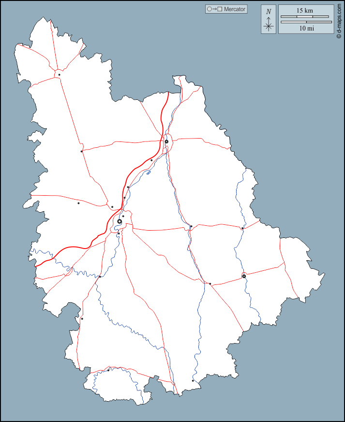 d-maps > यूरोप > फ़्रान्स > वियने > बाह्यरेखा, जल-सर्वेक्षण, मुख्य शहरों, सड़कों