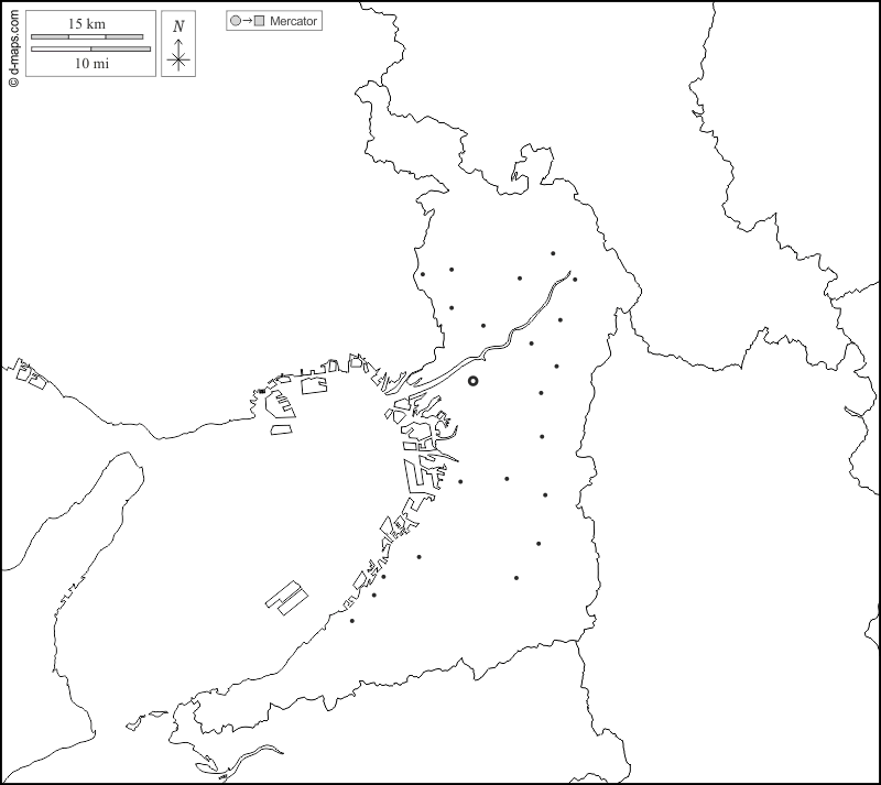 d-maps > एशिया > जापान > ओसाका > सीमाओं, मुख्य शहरों, सफेद