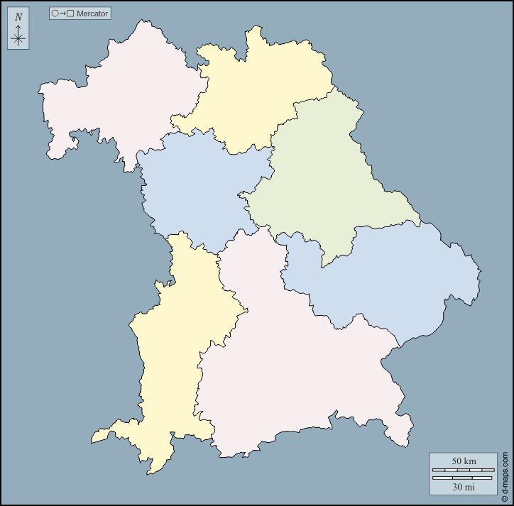 d-maps > यूरोप > जर्मनी > बवेरिया का स्वतंत्र राज्य > बाह्यरेखा, क्षेत्र, रंग