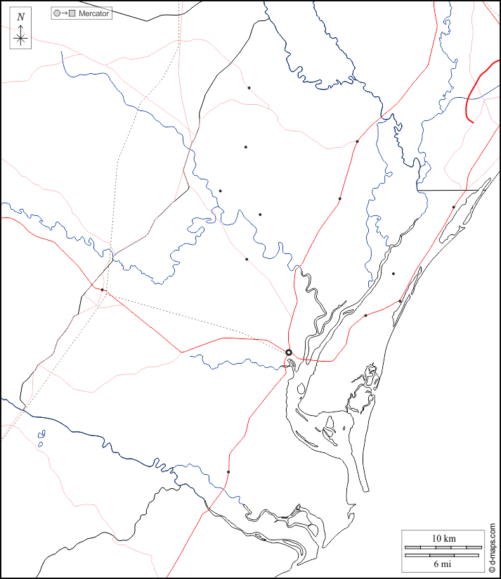 d-maps > संयुक्त राज्य > नॉर्थ कैरोलीना > जॉर्ज टाउन काउंटी > सीमाओं, जल-सर्वेक्षण, मुख्य शहरों, सड़कों, सफेद