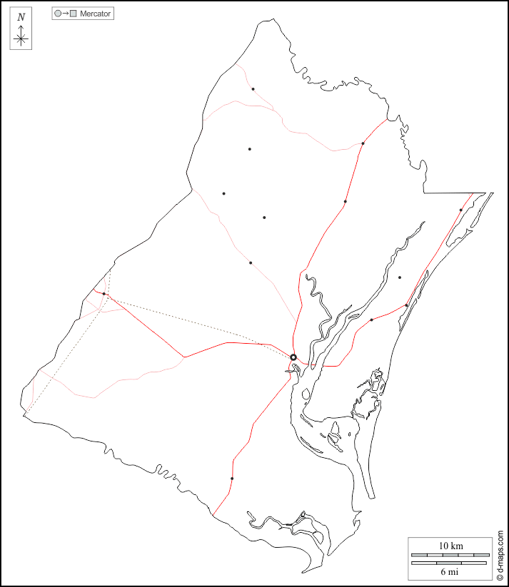 d-maps > संयुक्त राज्य > नॉर्थ कैरोलीना > जॉर्ज टाउन काउंटी > बाह्यरेखा, मुख्य शहरों, सड़कों, सफेद