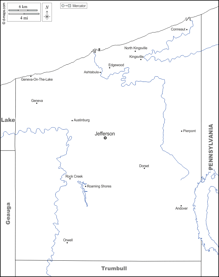 d-maps > संयुक्त राज्य > ओहायो > अष्टबुला काउंटी > सीमाओं, जल-सर्वेक्षण, मुख्य शहरों, नाम, सफेद