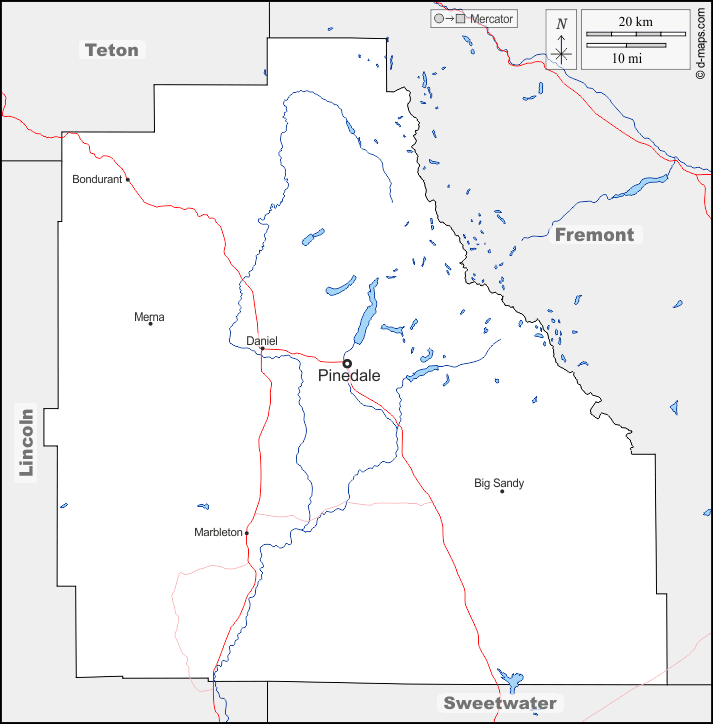 d-maps > संयुक्त राज्य > वायोमिंग > सबलेट काउंटी > सीमाओं, जल-सर्वेक्षण, मुख्य शहरों, सड़कों, नाम