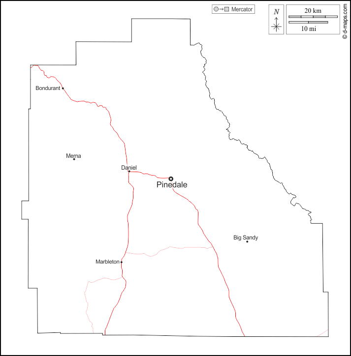d-maps > संयुक्त राज्य > वायोमिंग > सबलेट काउंटी > बाह्यरेखा, मुख्य शहरों, सड़कों, नाम, सफेद