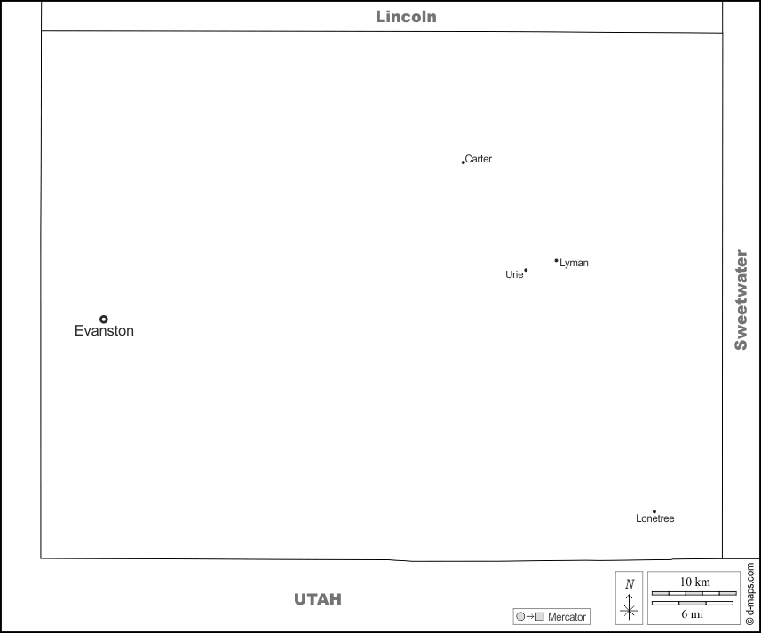 d-maps > संयुक्त राज्य > वायोमिंग > यूंटा काउंटी > सीमाओं, मुख्य शहरों, नाम, सफेद