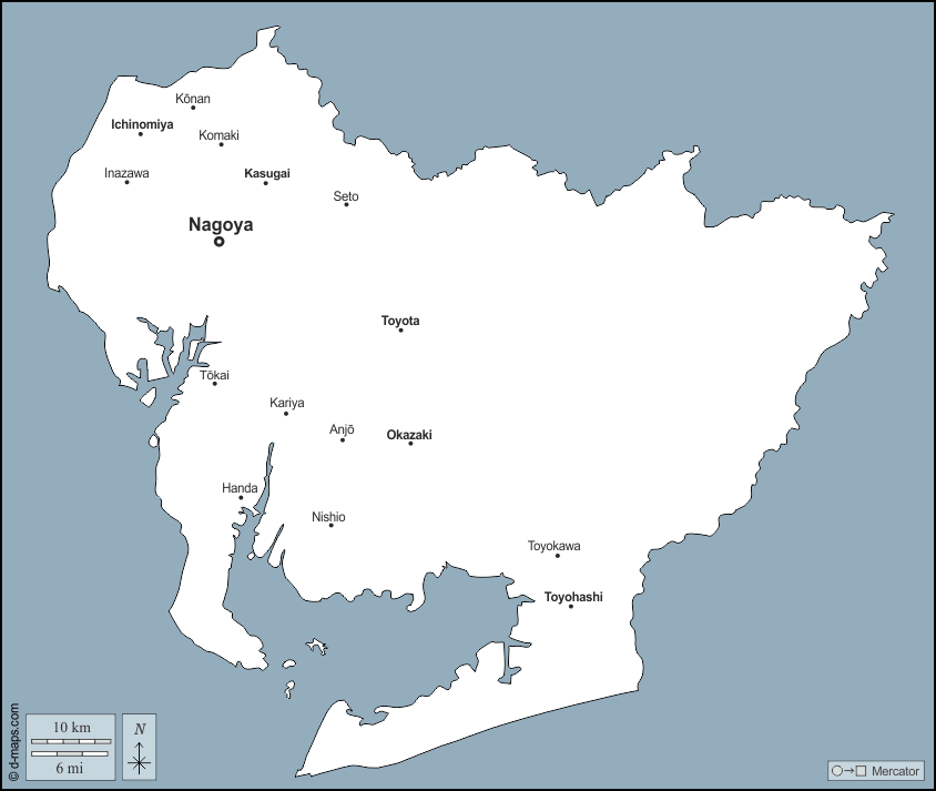 d-maps > एशिया > जापान > आइचीआइची प्रीफ़ेक्चर > बाह्यरेखा, मुख्य शहरों, नाम