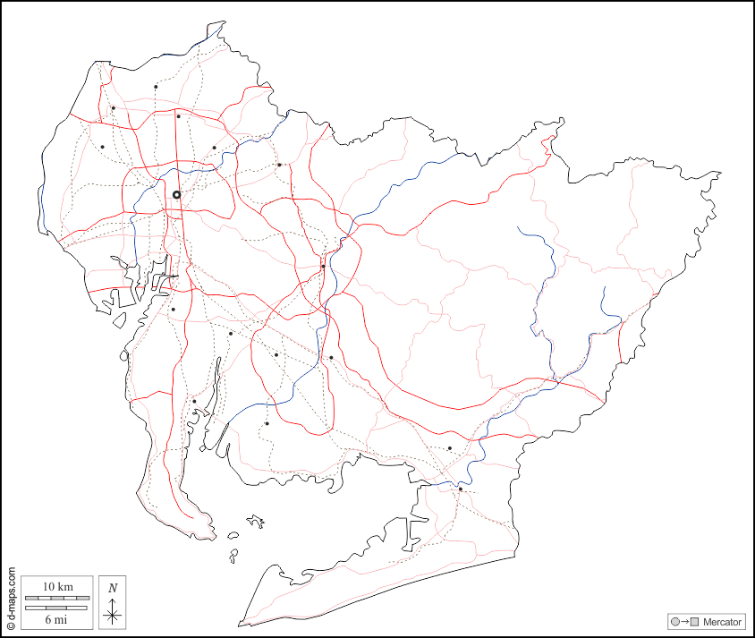 d-maps > एशिया > जापान > आइचीआइची प्रीफ़ेक्चर > बाह्यरेखा, जल-सर्वेक्षण, मुख्य शहरों, सड़कों, सफेद