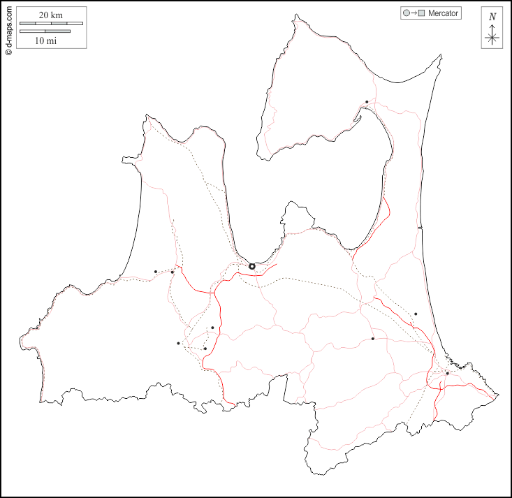 d-maps > एशिया > जापान > आओमोरी प्रीफ़ेक्चर > बाह्यरेखा, मुख्य शहरों, सड़कों, सफेद