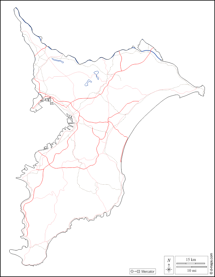 d-maps > एशिया > जापान > चिबा > बाह्यरेखा, जल-सर्वेक्षण, सड़कों, सफेद