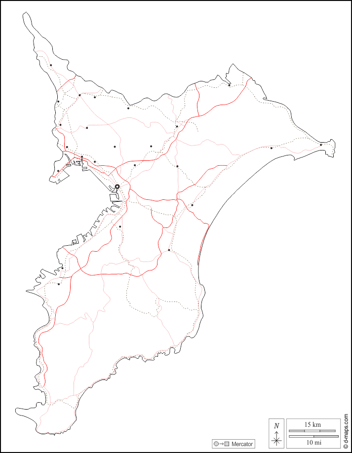 d-maps > एशिया > जापान > चिबा > बाह्यरेखा, मुख्य शहरों, सड़कों, सफेद