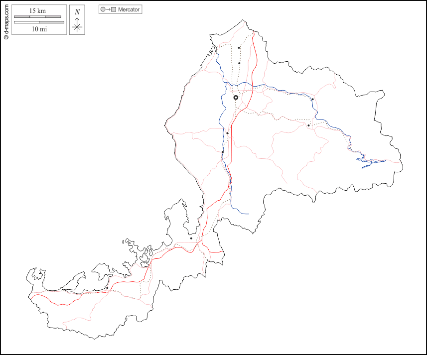 d-maps > एशिया > जापान > फुकुइ > बाह्यरेखा, जल-सर्वेक्षण, मुख्य शहरों, सड़कों, सफेद