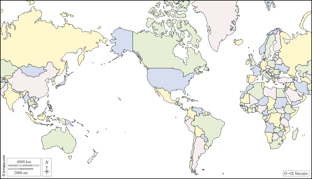 d-maps > दुनिया और महासागरों > विश्व प्लैनिस्फीयर (अमेरिका) > राज्यों, रंग, सफेद