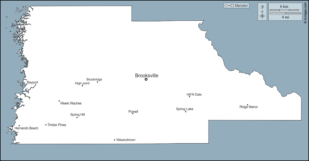d-maps > संयुक्त राज्य > फ्लोरिडा > हर्नान्डो काउंटी > बाह्यरेखा, मुख्य शहरों, नाम