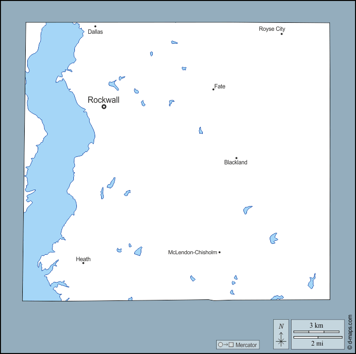 d-maps > संयुक्त राज्य > टेक्सास > रॉकवाल काउंटी > बाह्यरेखा, जल-सर्वेक्षण, मुख्य शहरों, नाम