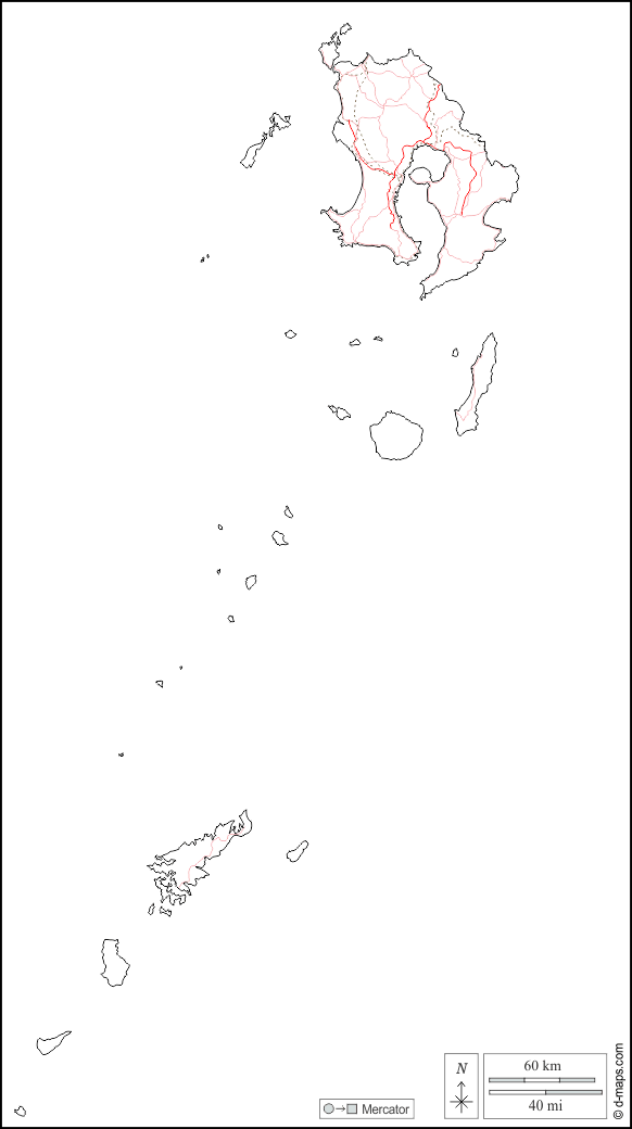 d-maps > एशिया > जापान > कागोशिमा > बाह्यरेखा, सड़कों, सफेद