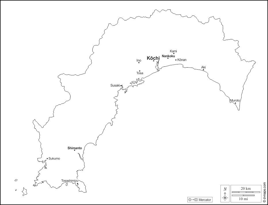 d-maps > एशिया > जापान > कोच्चि > बाह्यरेखा, मुख्य शहरों, नाम, सफेद