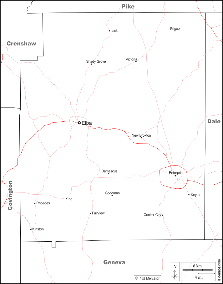 d-maps > संयुक्त राज्य > अलबामा > कॉफी काउंटी > सीमाओं, मुख्य शहरों, सड़कों, नाम, सफेद