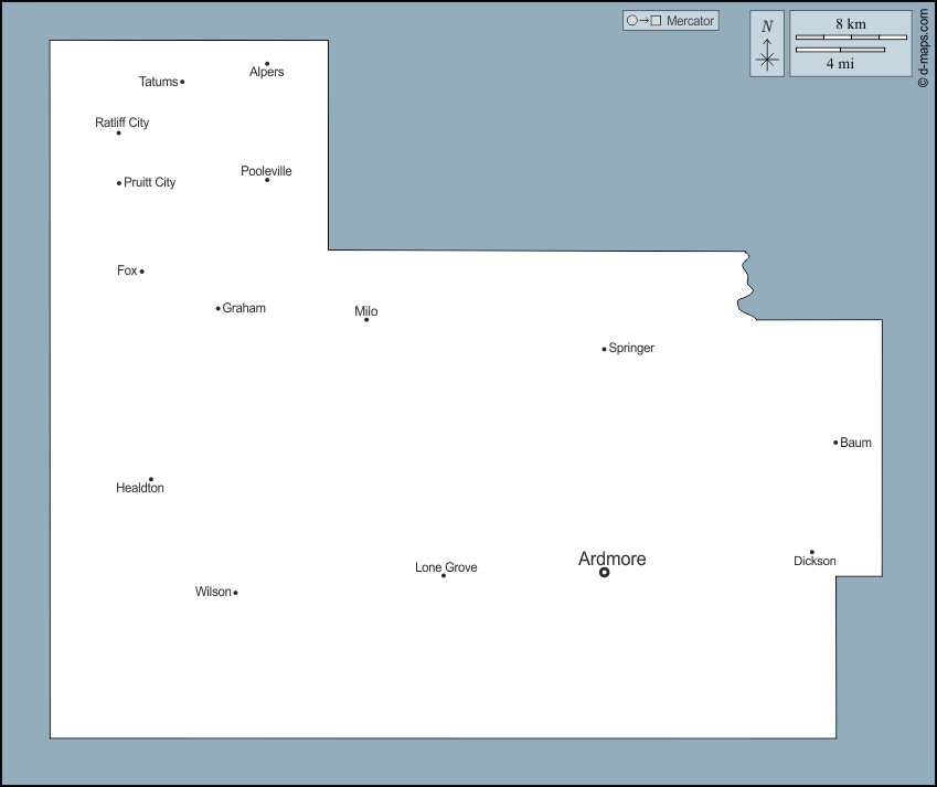 d-maps > संयुक्त राज्य > ओकलाहोमा > कार्टर काउंटी > बाह्यरेखा, मुख्य शहरों, नाम