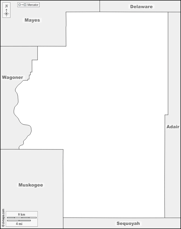 d-maps > संयुक्त राज्य > ओकलाहोमा > चेरोकी काउंटी > सीमाओं, नाम