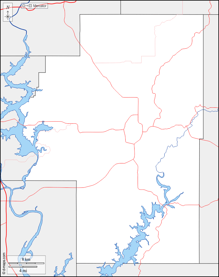 d-maps > संयुक्त राज्य > ओकलाहोमा > चेरोकी काउंटी > सीमाओं, जल-सर्वेक्षण, सड़कों