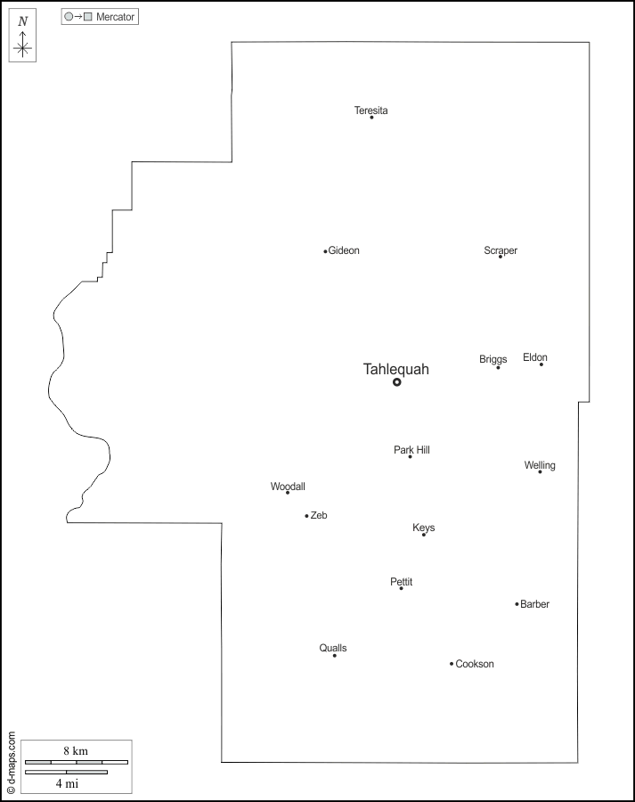 d-maps > संयुक्त राज्य > ओकलाहोमा > चेरोकी काउंटी > बाह्यरेखा, मुख्य शहरों, नाम, सफेद