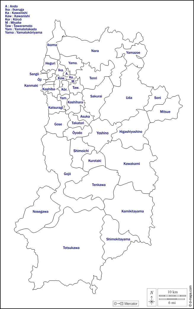 d-maps > एशिया > जापान > नारा > बाह्यरेखा, नगर पालिकाओं, नाम, सफेद