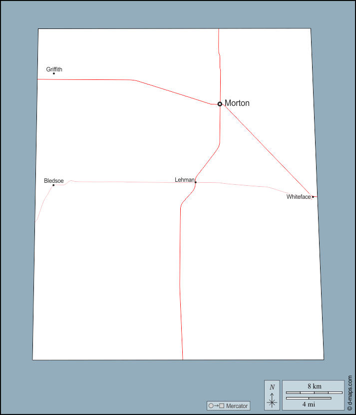 d-maps > संयुक्त राज्य > टेक्सास > कोचरान काउंटी > बाह्यरेखा, मुख्य शहरों, सड़कों, नाम