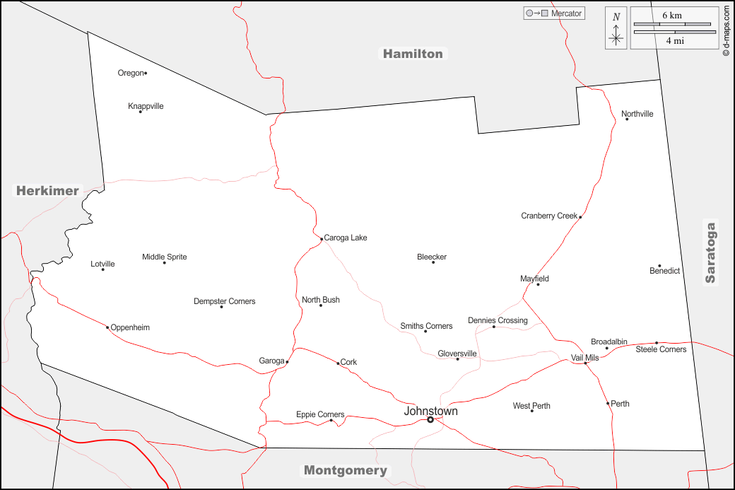 d-maps > संयुक्त राज्य > न्यू यॉर्क > फुल्टन काउंटी > सीमाओं, मुख्य शहरों, सड़कों, नाम