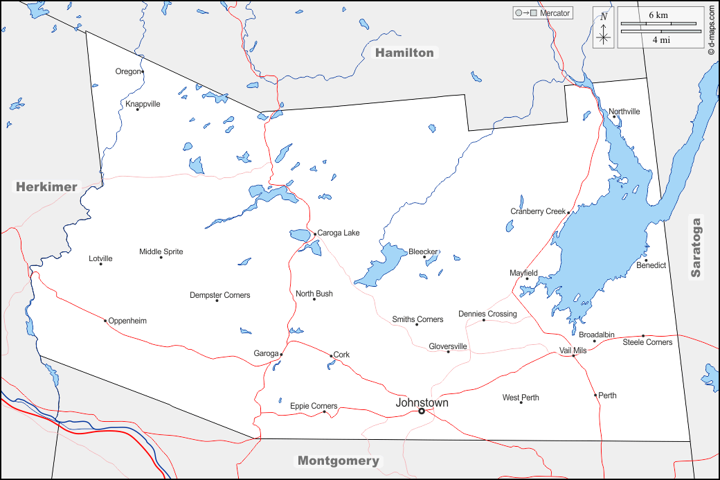 d-maps > संयुक्त राज्य > न्यू यॉर्क > फुल्टन काउंटी > सीमाओं, जल-सर्वेक्षण, मुख्य शहरों, सड़कों, नाम