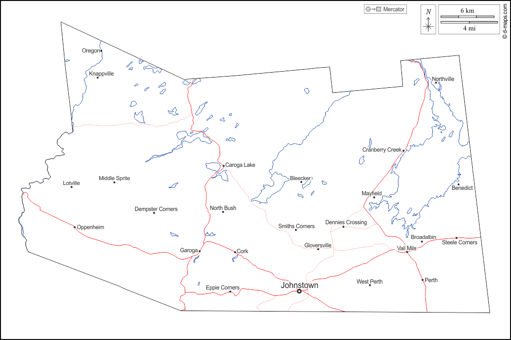 d-maps > संयुक्त राज्य > न्यू यॉर्क > फुल्टन काउंटी > बाह्यरेखा, जल-सर्वेक्षण, मुख्य शहरों, सड़कों, नाम, सफेद