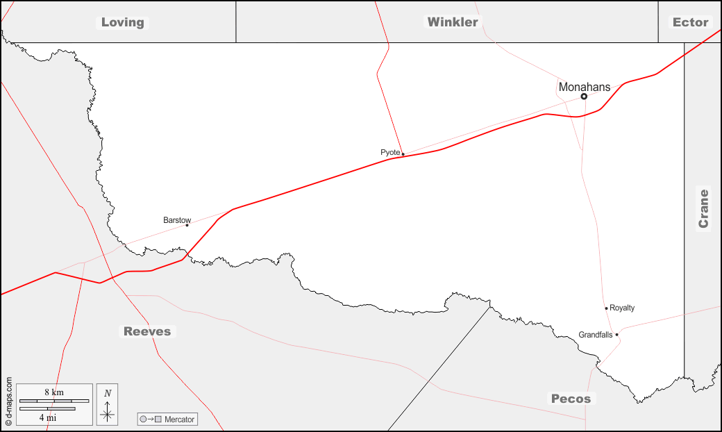 d-maps > संयुक्त राज्य > टेक्सास > वार्ड काउंटी > सीमाओं, मुख्य शहरों, सड़कों, नाम