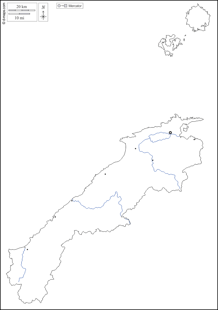 d-maps > एशिया > जापान > शिमाने > बाह्यरेखा, जल-सर्वेक्षण, मुख्य शहरों, सफेद
