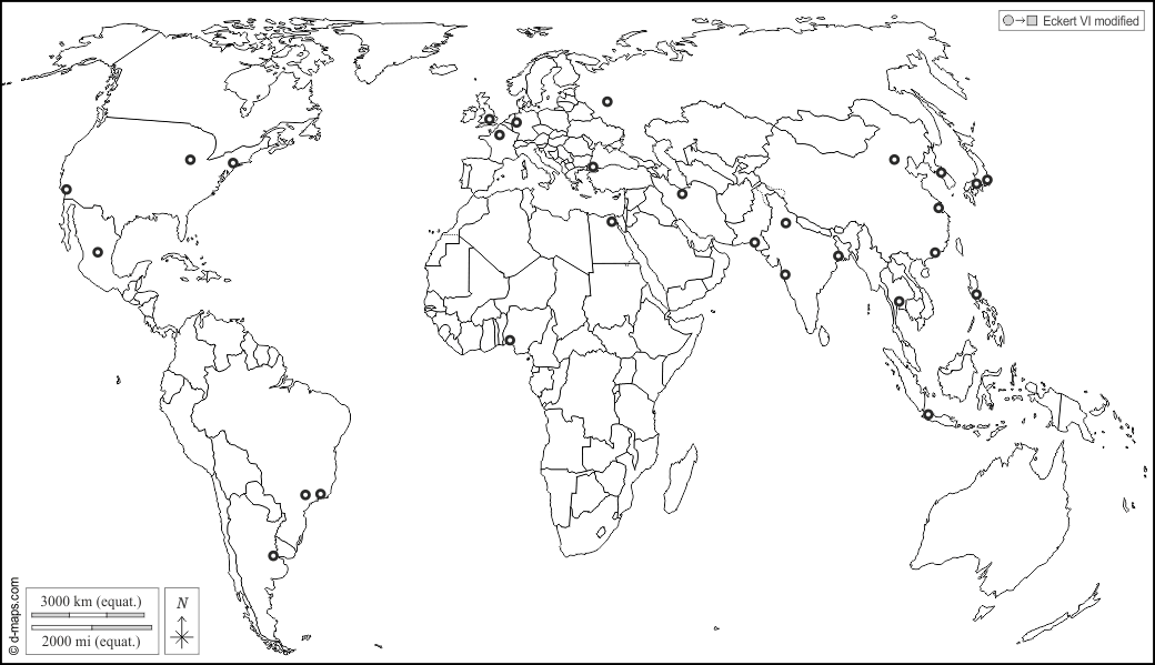 विश्व प्लैनिस्फीयर (यूरोप अफ्रीका) : मुख्य कस्बों