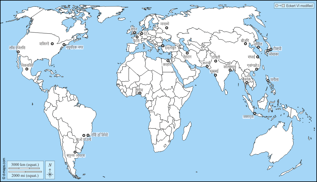 विश्व प्लैनिस्फीयर (यूरोप अफ्रीका) : मुख्य कस्बों