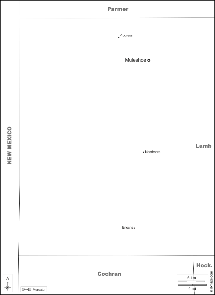 d-maps > संयुक्त राज्य > टेक्सास > बेली काउंटी > सीमाओं, मुख्य शहरों, नाम, सफेद