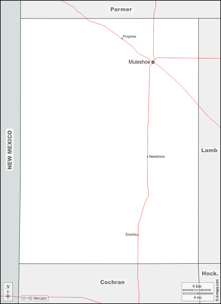 d-maps > संयुक्त राज्य > टेक्सास > बेली काउंटी > सीमाओं, मुख्य शहरों, सड़कों, नाम