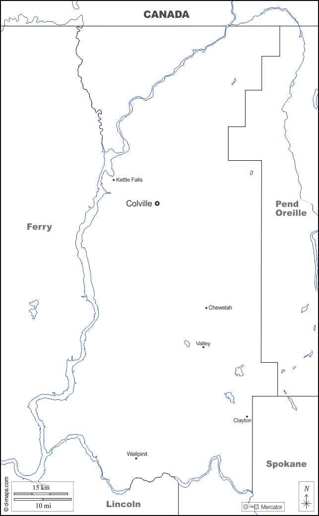 d-maps > संयुक्त राज्य > वॉशिंगटन > स्टीवेन्स काउंटी > सीमाओं, जल-सर्वेक्षण, मुख्य शहरों, नाम, सफेद