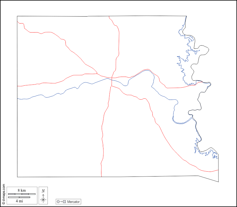 d-maps > संयुक्त राज्य > टेक्सास > ललन काउंटी > बाह्यरेखा, जल-सर्वेक्षण, सड़कों, सफेद