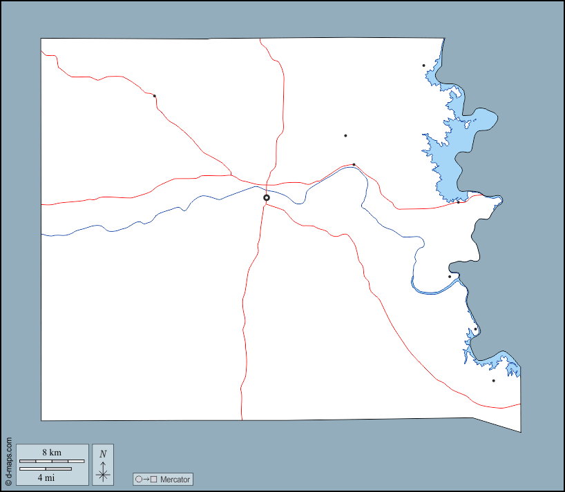 d-maps > संयुक्त राज्य > टेक्सास > ललन काउंटी > बाह्यरेखा, जल-सर्वेक्षण, मुख्य शहरों, सड़कों