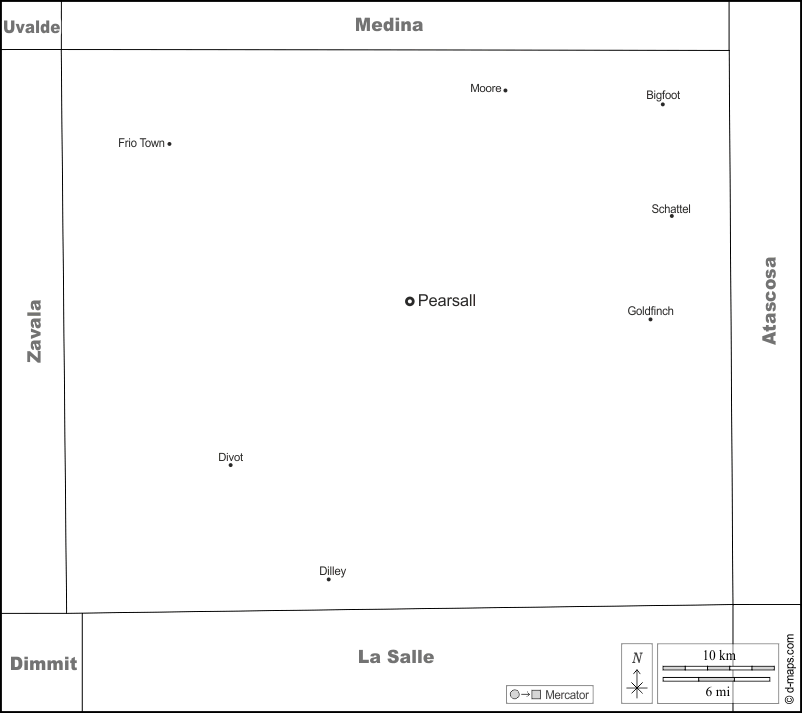 d-maps > संयुक्त राज्य > टेक्सास > फ्रिओ काउंटी > सीमाओं, मुख्य शहरों, नाम, सफेद