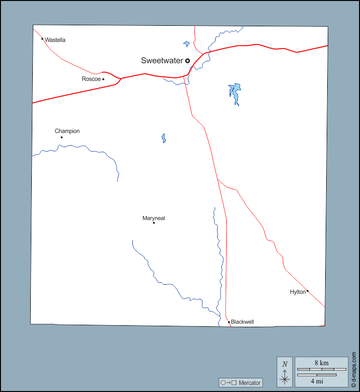 d-maps > संयुक्त राज्य > टेक्सास > नोलन काउंटी > बाह्यरेखा, जल-सर्वेक्षण, मुख्य शहरों, सड़कों, नाम