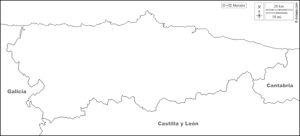 d-maps > यूरोप > स्पेन > आस्तुरियास > सीमाओं, नाम, सफेद